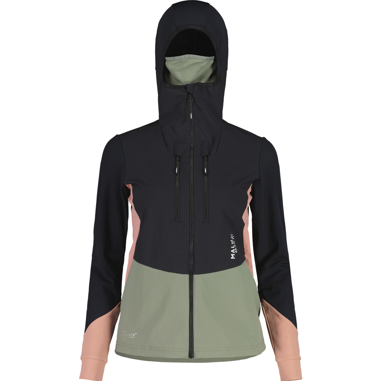 Het "KORAINm" jack is uitgerust met een stormmuts en masker voor extra bescherming tegen de elementen. Het gebruikte cembra® LIGHT materiaal maakt het jack licht maar duurzaam, ideaal voor buitenactiviteiten.